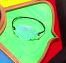 Cuando está siendo usado por la identidad civil de su portador, es un brazalete formado por una piedra verde brillante con forma de tortuga atada por ambos extremos por una cuerda negra.